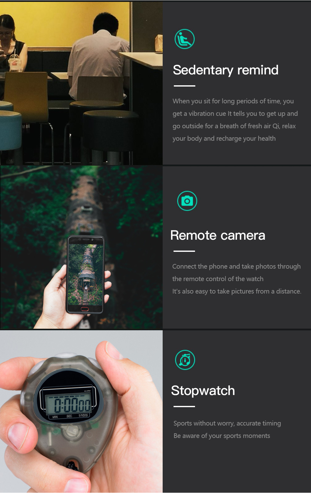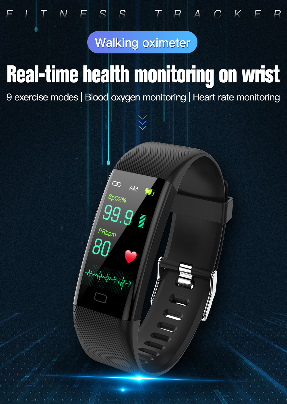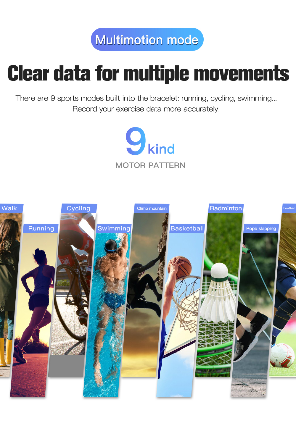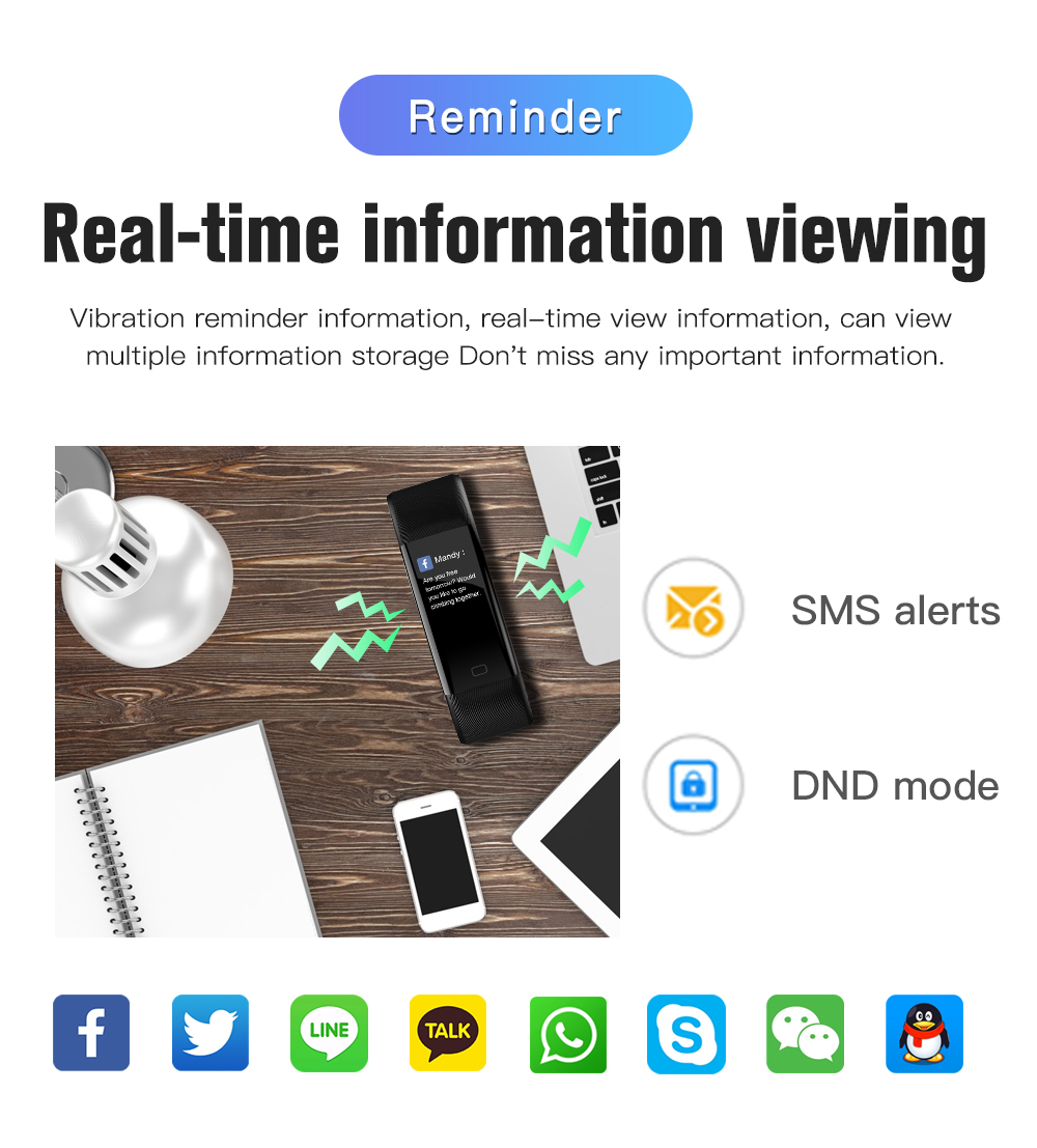 Its multi-sport modes support activities such as running, cycling, climbing, walking, basketball, football, badminton, skipping rope, and swimming, providing versatile fitness tracking capabilities. The 0.96-inch TFT screen with single-point touch and Bluetooth BLE 4.0 connectivity ensures seamless interaction and compatibility with iOS and Android devices.