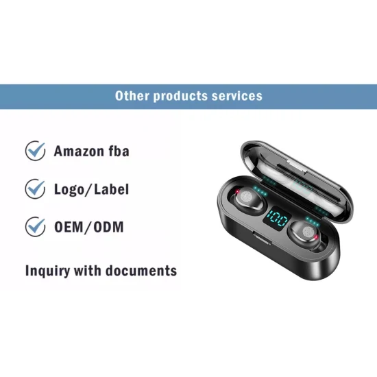 Wholesale TWS F9-5 Wireless Earbuds offering stereo sound with noise reduction, touch control, and integrated power bank. Compatible with all phone models and customizable for bulk orders.